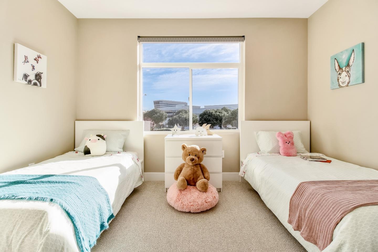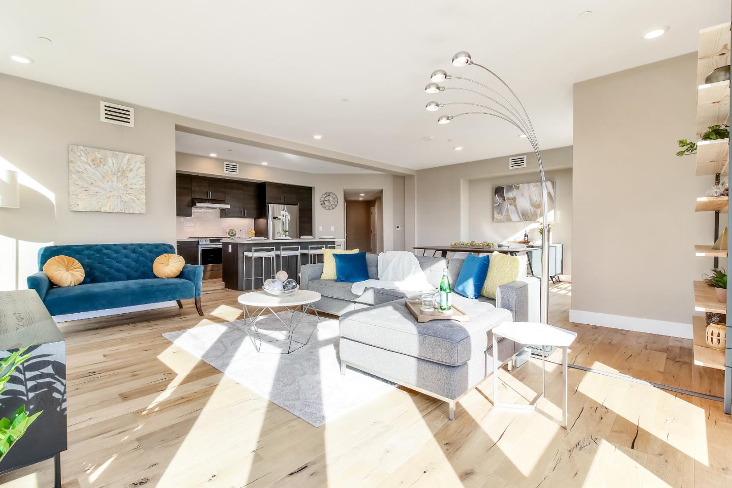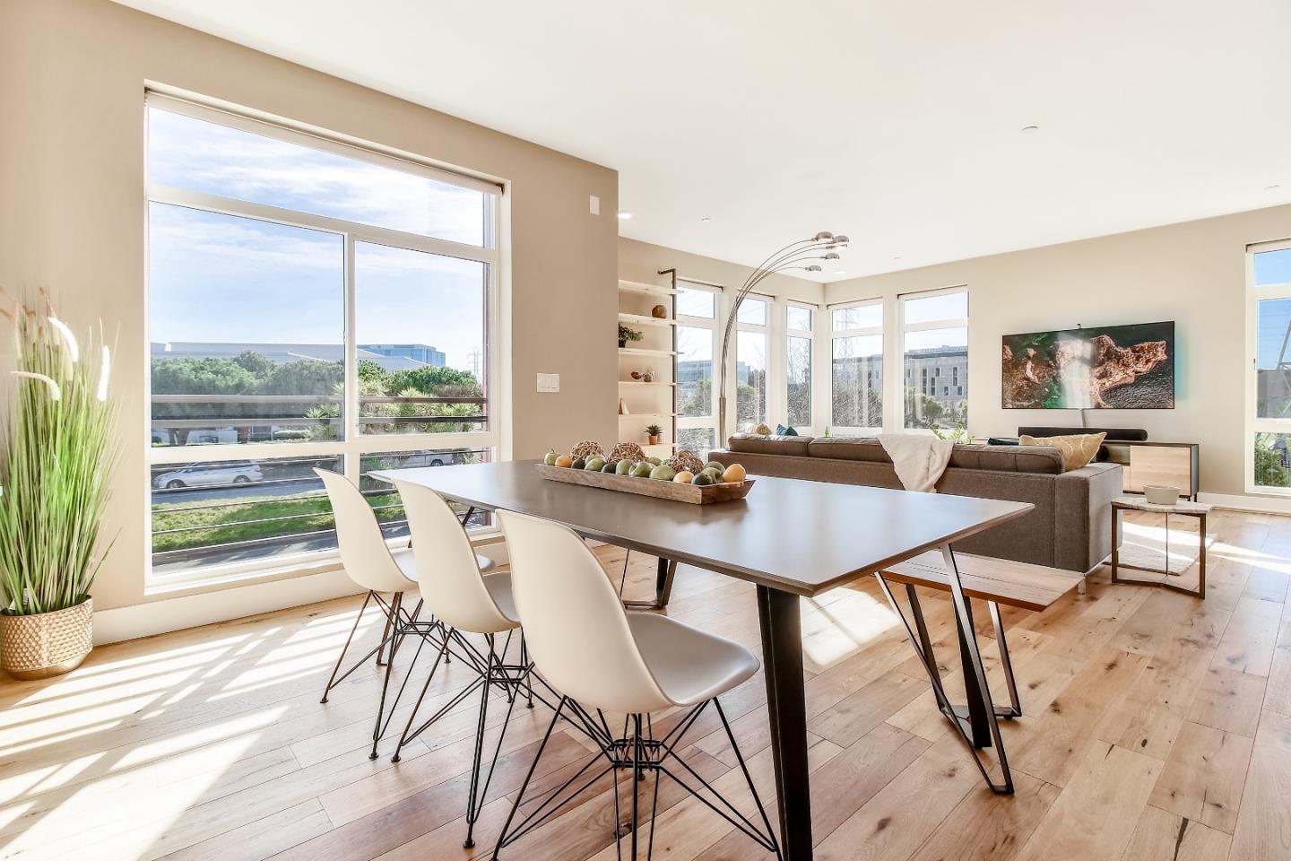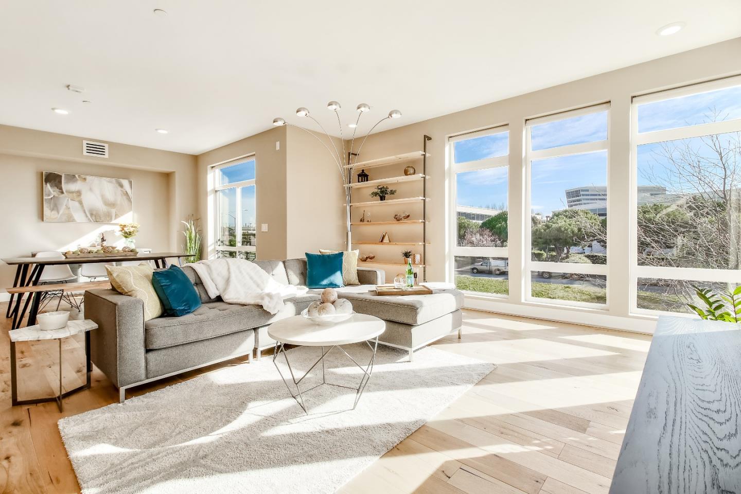 Your new home awaits in this luxurious, nearly-new construction corner-unit retreat in the Tidelands! Over 1500sf, this expansive 2-bed, 2-bath home is one of the largest. Above street-level, comes with TWO parking spaces in a secured garage. Bright and airy all day with open living/dining/kitchen with floor-to-ceiling windows, perfect for entertainment. Boasts white oak floors, Bosch stainless steel appliances, quartz countertops, plus upgrades including automated smart shades, custom cabinetry organizers, closet system, and more. Central AC, oversized bedrooms with walk-in closets! Community features patio with BBQ, gym, rec room, bike locker. EV charging on-site, and HOA includes water and gas! Ideally situated steps from a golf course, trails, and parks with Bay views. Short drive to newly-expanded Hillsdale Mall, charming peninsula downtowns, and Whole Foods, Trader Joe’s, Target, Costco. Major employers nearby, easy access to 101/92.